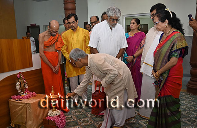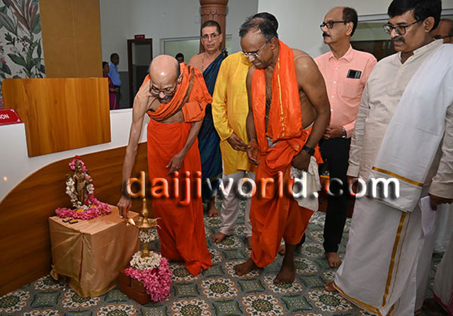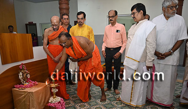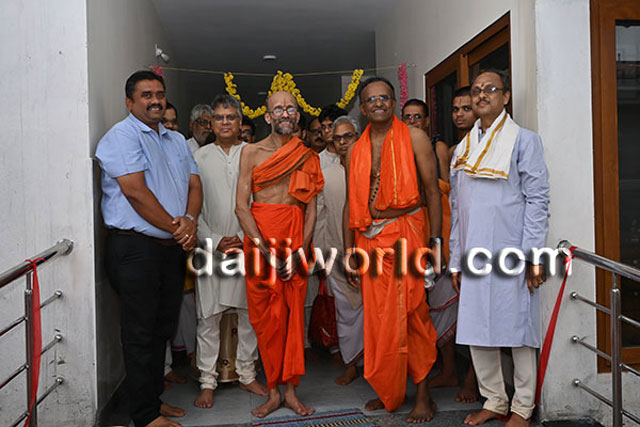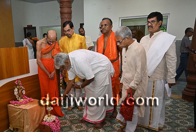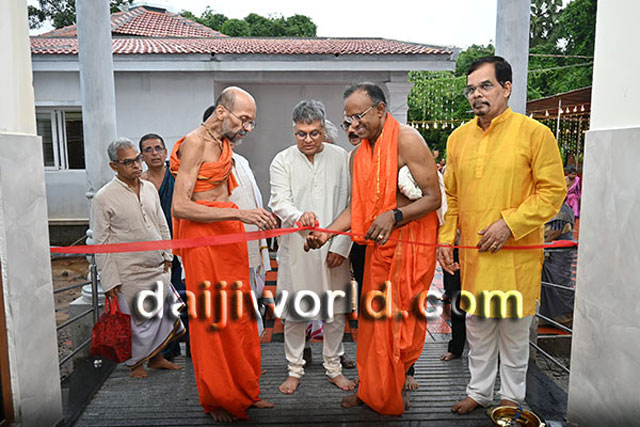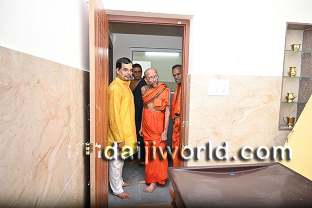 Udupi, July 16: Sri Sri Vidyasagara Theertha Swamiji of Sri Krishnapura Mutta inaugurated the Krishnaveni Ashrayadhamaa – a retirement home, and the Krishnaveni Ayurveda Treatment and Wellness Centre, developed by the Salmara Govind Bhat Family Trust at Salmara in Shankerpura, on Monday 15 July.